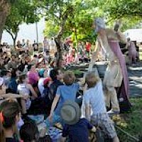 Clowns brincalhões em andas, carregados com uma mala cheia de malabares. Animação circense, com interacção e diversão à fartazana. Durante a manhã de sábado e em vários outros momentos do programa, Os Kopinxas são a animação permanente do público do Festival i.