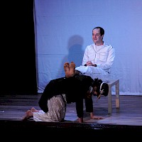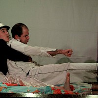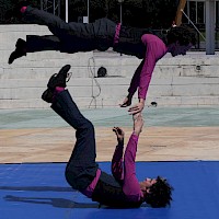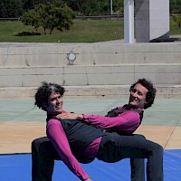 Brilhante criação de circo contemporâneo, tendo como único instrumento o corpo, num espectáculo com um código próprio, sem texto, baseado na subtileza. Comédia e virtuosismo numa peça que retrata o encontro físico e emocional de dois amigos a quem só falta um... abraço.