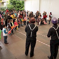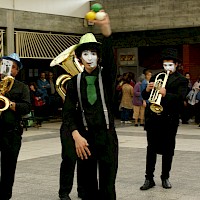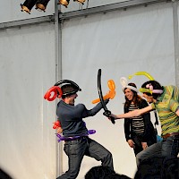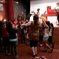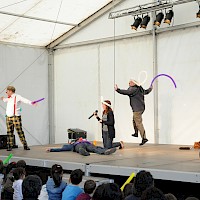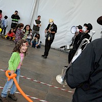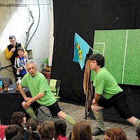 | SÁBADO 19 MAIO 14h30, Auditório Ana Paula Silva No Tempo em que os Instrumentos Falavam É sempre a mesma coisa! Charles nunca chega a horas! O público já está inquieto e as duas instrumentistas (flauta e cravo) têm que começar o espectáculo sem ele. É quando Charles irrompe pela sala, ofegante, para um espectáculo interactivo sobre... música barroca! Para crianças curiosas e adultos divertidos. 15h30, Auditório do CEFAS O Nabo Gigante - Partículas Elementares Num pequeno e lindo quintal, onde vive um simpático casal de velhinhos, nasceu um nabo. Não um nabo qualquer, mas um nabo gigante! Tão gigante que ninguém o conseguia arrancar. O que fazer? Isso é o que vamos descobrir nesta história simples e visual em que mesmo o mais pequeno pode ter uma importância... gigante. 16h30, Espaço d’Orfeu - Latada O Elefante não entra na Jogada - Companhia do Jogo Dois actores desdobram-se numa quantidade incrível de personagens. Tudo começa quando um guarda-redes teimoso se recusa a jogar e o presidente do Soquetes de Alpercatas tem que arranjar substituto para o jogo com o rival Riscadinhos FC, que também tem lacunas no plantel. As contratações são bizarras, a bicharada é toda contratada! 17h30, Espaço d’Orfeu - Quintal Mimo’s Dixie Band Grupo de animação de rua que conjuga as artes circenses com a alegria da música Dixie dos anos vinte tocada ao vivo. Uma dezena de músicos muito bem caracterizados e um malabarista com fogo, massas, bolas e outros adereços, para a animação permanente do sábado do Festival i. 18h30, Espaço d’Orfeu - Tenda O Palhaço Escultor - Pedro Tochas Um malabarista entra no palco onde vai apresentar o seu espectáculo. Ao sentir o público, as suas emoções alteram-se. Apaixona-se, zanga-se, fica contente, fica triste, esquecendo-se que está ali para fazer malabarismo. Começa a utilizar balões para mostrar o que sente. O palhaço escultor vai reinventar o seu espectáculo com a ajuda do público do i! |