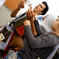 Clowns brincalhões em andas, carregados com uma mala cheia de malabares. Animação circense, com interacção e diversão à fartazana. Durante a manhã de sábado e em vários outros momentos do programa, Os Kopinxas são a animação permanente do público do Festival i.