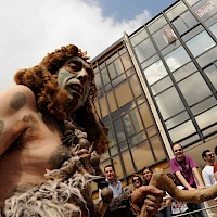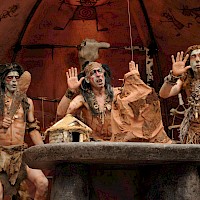 Hilariante viagem à pré-história. Os Trogloditas mostram-nos a singular forma de vida dos nossos antepassados mais divertidos, com gestos, grunhidos e estranhos objectos e instrumentos, numa caverna montada em plena rua. Com o humor primitivo destes Trogloditas, o difícil é parar de rir.